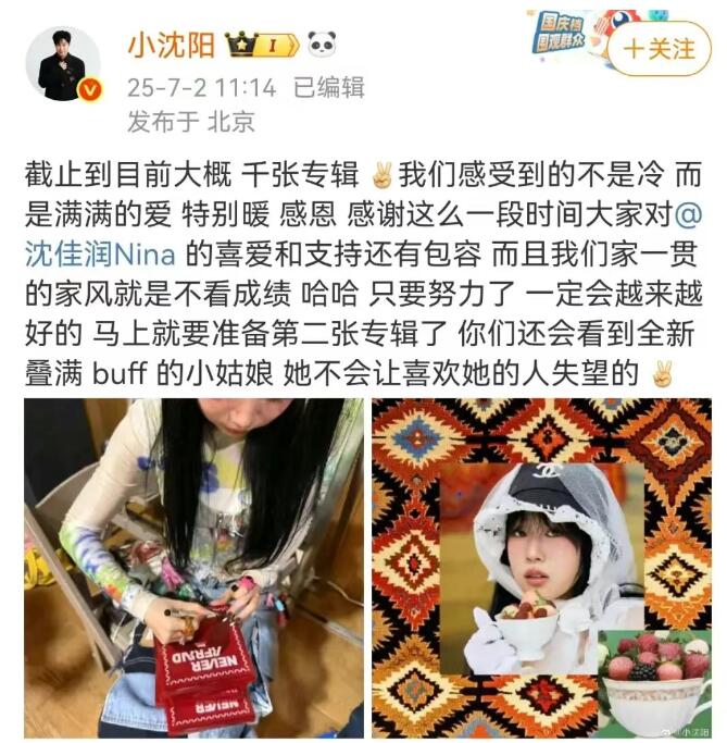 刚刚,小沈阳在个人社交平台发文回应“女儿专辑售卖遇冷”一事:
